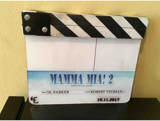 Film buffs, start your bidding! This is a camera slate used on the set of Mamma Mia! 2.