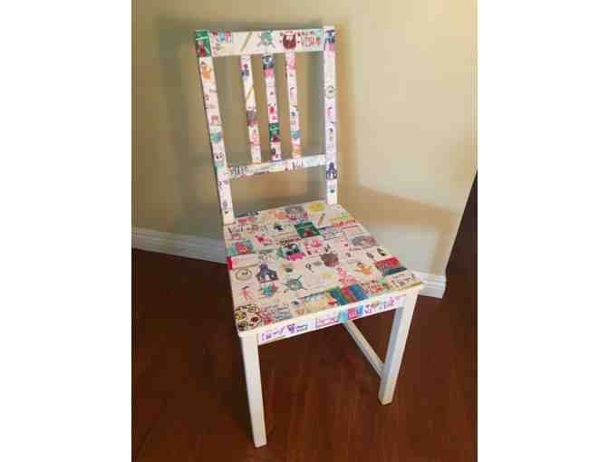 We asked the 5th grader what comes to mind when they think of WISH, as well as who they "WISH" to be. The students then created drawings to reflect their answers, and the artwork was assembled to create a decoupage chair. You'll be eager to sit your butt down in this beauty.