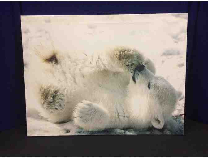 Adorable Polar Bear print on canvas, measures 12" high X 16" wide.