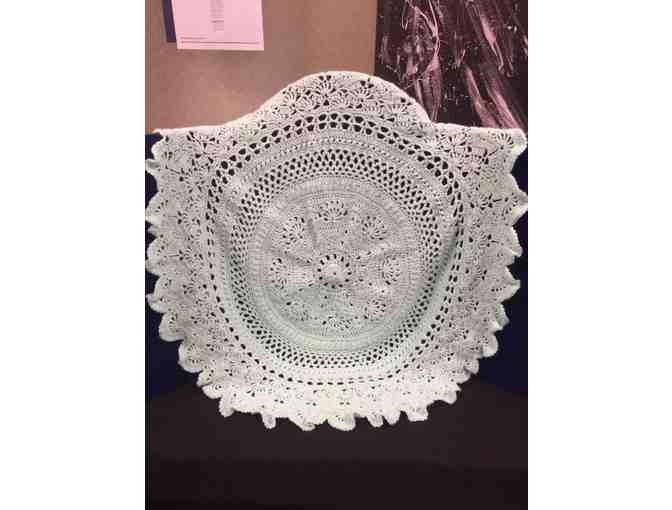 This gorgeous, hand crocheted baby blanket is a shade of soft mint and the yarn used was just as soft! Blanket is round and approx. 42" in diameter. A beautiful piece for a beautiful baby!