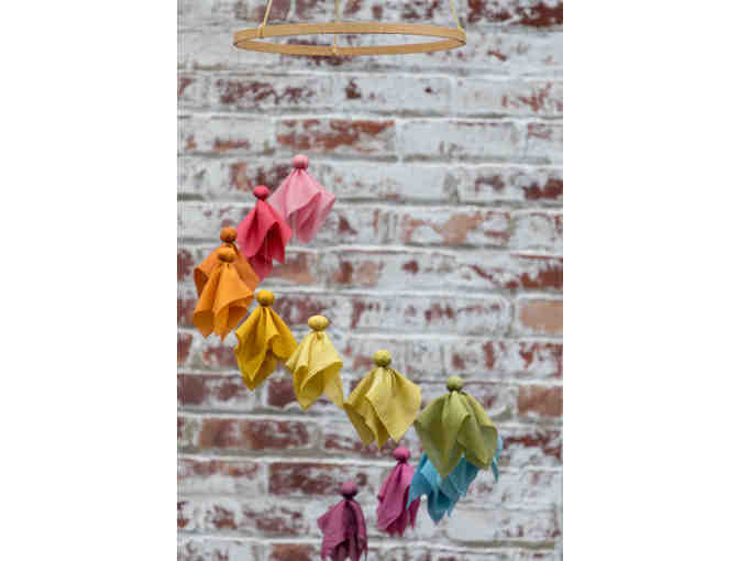 This mobile by the Fiber Craft Studio is plant-dyed and will add instant charm to your child's room or special area of your home.
