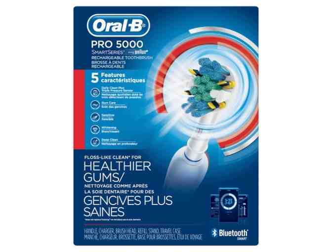 The Oral-B Pro 5000 SmartSeries Power Rechargeable Electric Toothbrush with Bluetooth Connectivity provides a floss-like clean* for healthier gums. Bluetooth communication allows the brush to connect with your smartphone to give you real-time feedback on your brushing habits. The pressure sensor lights up if you brush too hard to prevent harmful over-brushing and there are 5 modes and a timer to help you brush for a dentist recommended 2 minutes. Best of all its brought to you by Oral-B the #1 brand used by dentists worldwide.