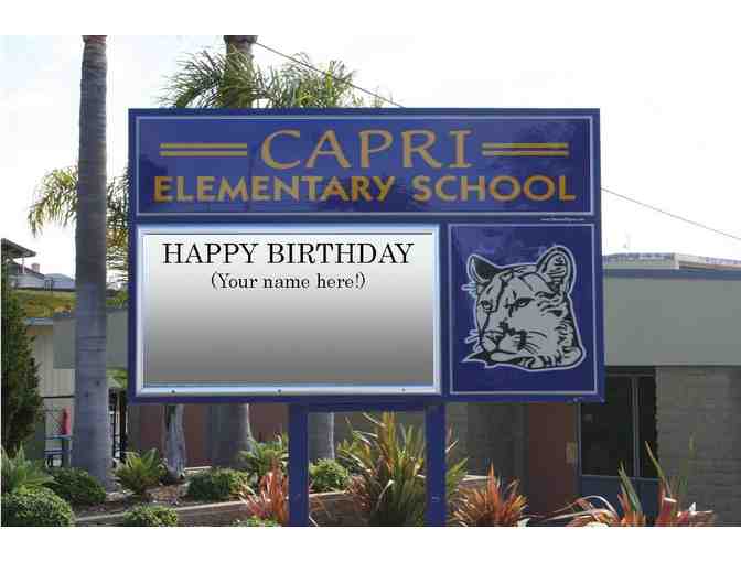Birthday must be of enrolled student, faculty or staff at Capri Elementary.