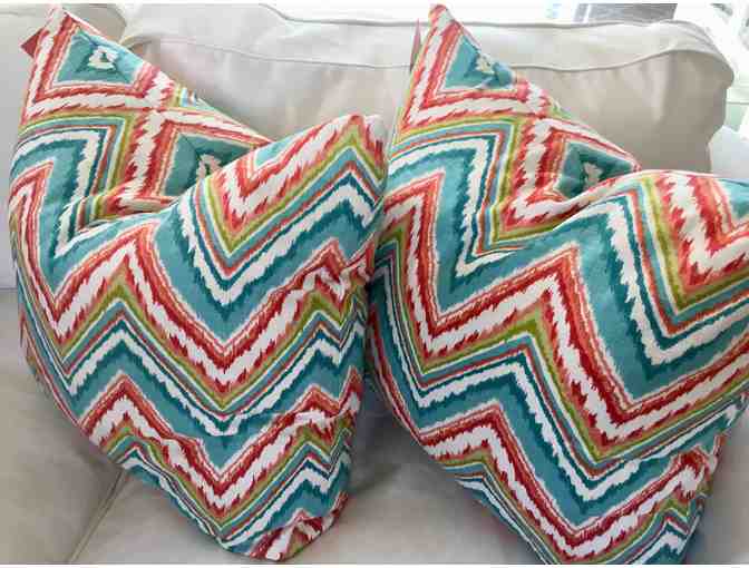 You are bidding on two colorful flame stitch throw pillows and a 1-hour home design consultation with Susan Currie of Susan Currie Design.