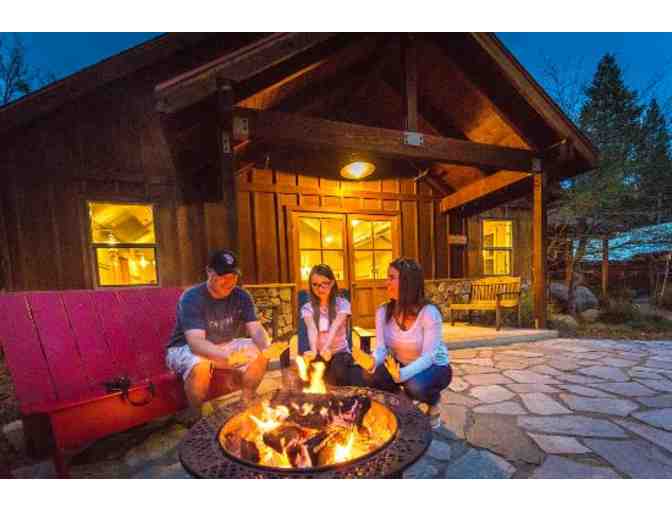 Enjoy a one night stay in a Deluxe King Cabin with fireplace at the Evergreen Lodge at Yosemite.