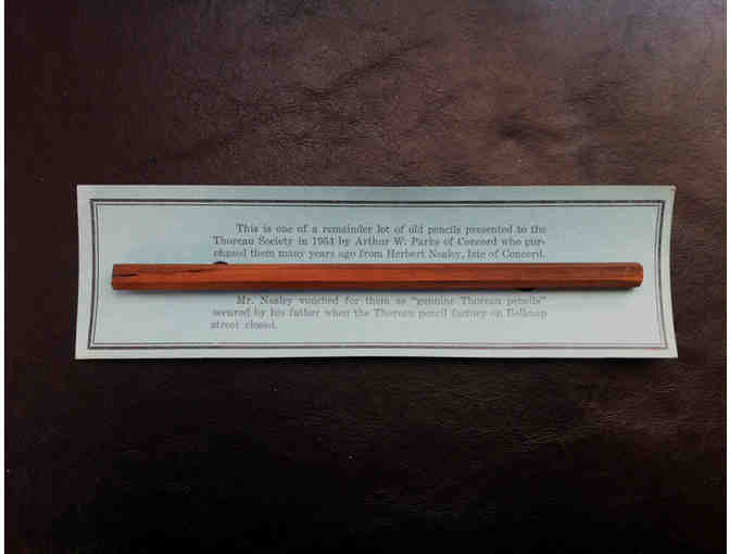This is one of a remainder lot of old pencils presented to the Thoreau Society in 1954 by Arthur W. Parke of Concord who purchased them many years ago from Herbert Nealey, late of Concord.