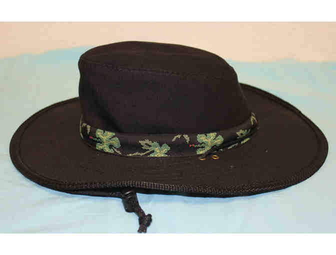 Breathable, tightly woven, natural cotton canvas which completely blocks out harmful rays. In rain the fibers swell, to keep you dry. When it's hot, dip in water and the slightest breeze cools you. The Osprey has been proven through many years use to be extremely durable, performing exceptionally well in all conditions and looking stylish through it all. Solid brass eyelets accommodate an adjustable cord system with nylon cord closure to insure a secure fit in windy conditions. Brim width is 3 1/2 inches.