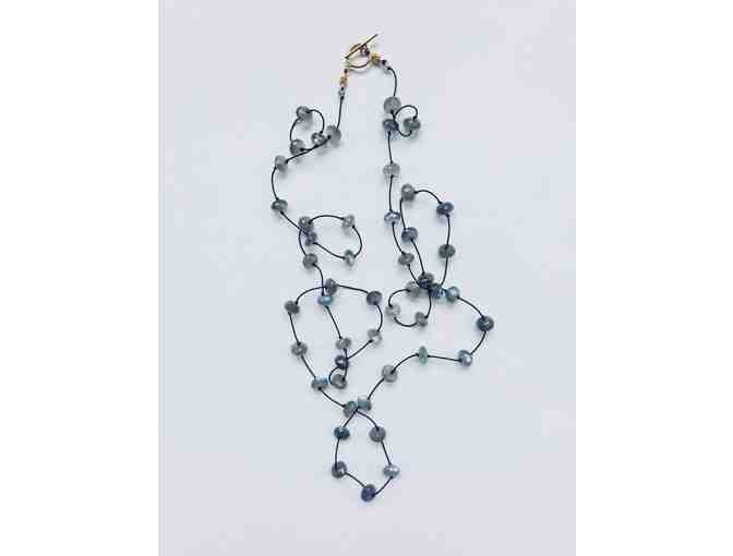 Handmade 19" labradorite necklace, hand knotted on black silk with 14K gold filled clasp