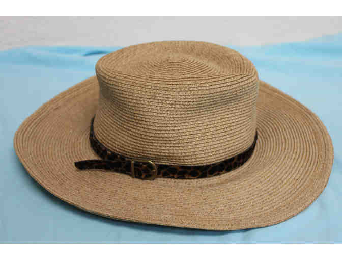 Eric Javits Squishee Packable Sun Hat with Leopard Trim