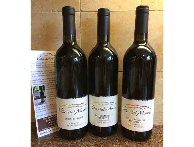 A trio of Merlot from Villa del Monte Winery in Los Gatos and a 2 for 1 wine tasting card!
