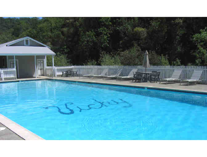 A day use voucher for 2 people. Day use includes the use of the famous "champagne" Vichy Mineral Baths, Olympic size swimming pool, Hot Pool and 700 acres of hiking trails. Picnic tables are available throughout the grounds for your enjoyment. Also includes a certificate for one night free when one night is purchased.