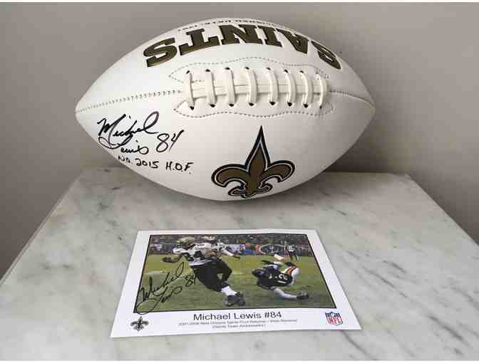 You are bidding on a signed football from Michael Lewis, New Orleans Saints Team Ambassador and Saints Hall of Famer. Grab this piece of history!
