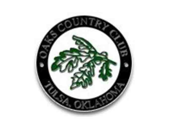 An 18-hole round of golf for four with carts at the Oaks Country Club in Tulsa, OK. Appropriate golf attire is required. Collared shirts, no denim. Be certain shirts are tucked in. This is a private country club and is closed on Mondays. Fridays are unavailable. Must contact Rick Reed at 918-446-5518 for appropriate time and date. Certificate expires one year from the date of purchase. URL: http://www.oakscountryclub.com/
