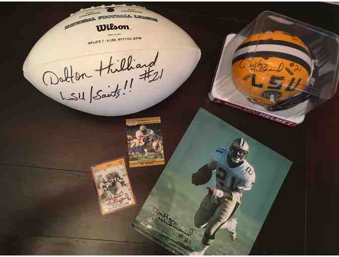 You are bidding on a package of amazing memorabilia from LSU and Saint's great, Dalton Hilliard. Package includes: autographed football, autographed mini helmet, 2 autographed football cards and an autographed photograph. For the true collector, Saint's or LSU enthusiast!