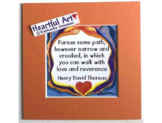 5x5 print of Henry David Thoreau quotation, "Pursue some path, however narrow and crooked, in which you can walk with love and reverence." Art by Raphaella Vaisseau