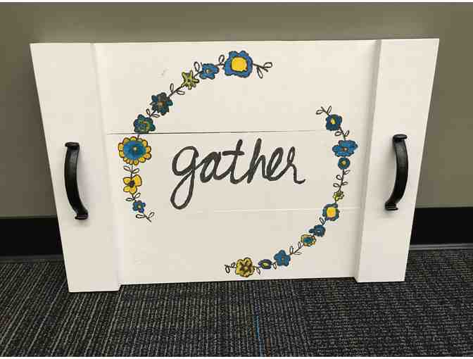 Each student painted a flower onto this rustic serving tray. Can also be used as wall art!