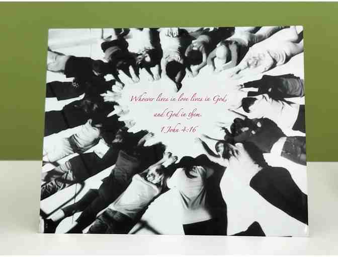 A picture of the students creating a heart shape with their bodies, surrounding a verse.