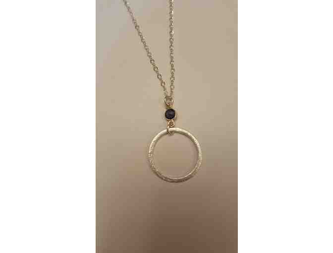 Stunning 18" sterling silver band sits below raw sapphire gemstone pendant.