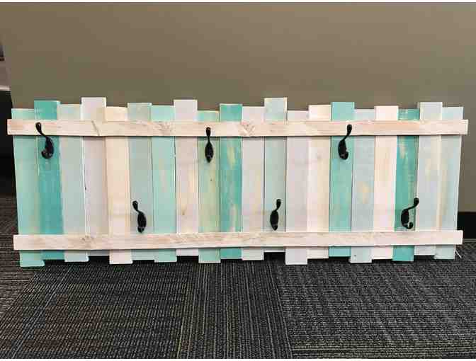 Each student painted their own wood plank that was used to create this rustic coat rack.