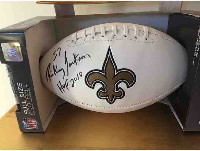 You are bidding on a signed football from #57 Rickey Jackson, New Orleans Saints legend, Saints Hall of Famer and Pro Football Hall of Famer.  Grab this piece of history!