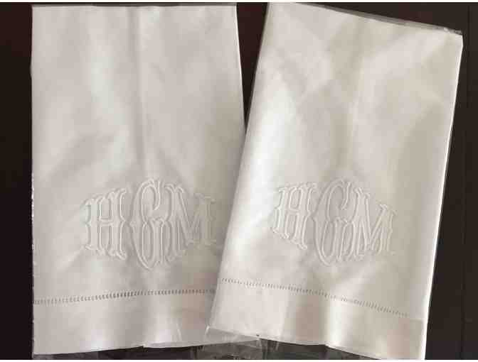 You are bidding on a pair of custom monogramed linen guest towels with appliqué monogram from Nola Party Pieces. Towels shown in photo are for an example.