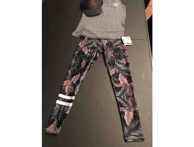 SIZE SMALL- Vintage Aloha with grey Tank and baseball hat. Made in America 88% polyester, 12% spandex Flatlock seams provide comfort Hidden key pocket Breathable, moisuture wicking, UV protection Perfect for running, yoga, SUP, surfing, and LIVING
