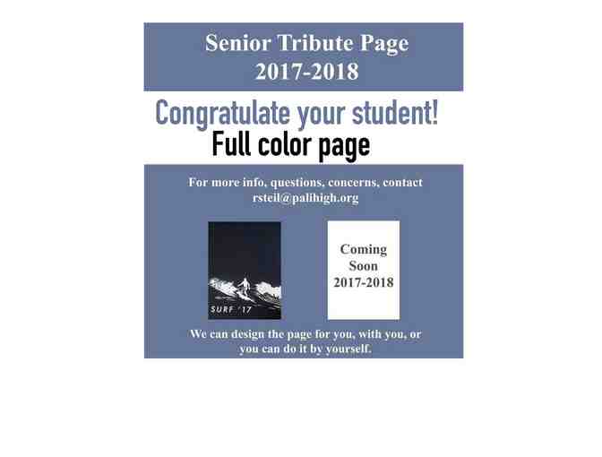 Design your own page, or upload photo's and the talented yearbook crew will put a fabulous page together for you. It's a fantastic way to congratulate and celebrate your student. Recognize a group or sport! The option is yours!!!