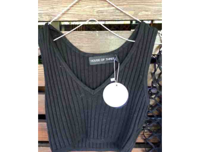 woven crop top (ribbed) - black - size 10 - runs small