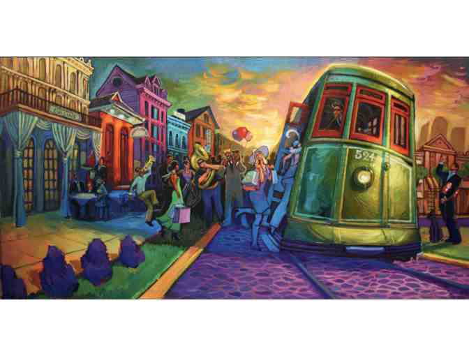 Uptown Bound, a lithograph print by Terrance Osbourne, is a delightful tribute to Uptown New Orleans, one of the artist's favorite parts of the city. Frame is included.