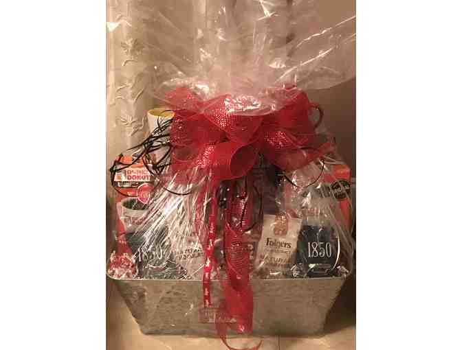 The coffee gourmands delight!!! Feast your eyes and nose on this assortment of coffee treats to satisfy your caffeine cravings. A true treat for the coffee connoisseur! This basket includes a coffee maker, an array of Folger's gourmet coffee beans and pods ready to compliment everything from your Keirug to your traditional coffee maker.