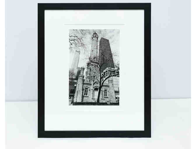 This professional matted, framed, black and white photograph of Chicago's iconic water tower and John Hancock building capture the mood, essence, and beauty of Chicago's downtown vibe on a winter's day.