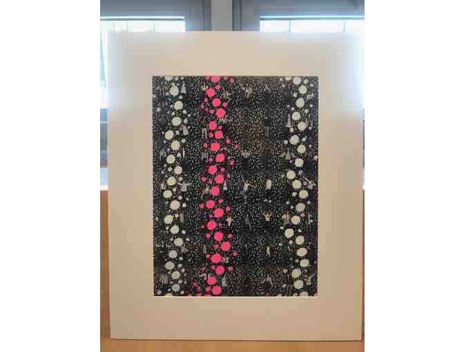 The entire 8th grade graduating class poses for this Yayoi Kusama-inspired print, photographed individually, collaged together and overlayed with painted-on dots.