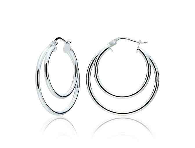 Sterling Silver Double Circle Round-Tube Polished Hoop Earrings, 30mm
