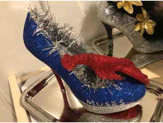 You are bidding on a one-of-a-kind Muses shoe with a Country Day theme, created by CD mon and Muses member Cherie Gauthier. This decorative glitter high heel shoe is adorned with a crawfish. It is perfect to show your school spirit while also celebrating carnival. Add this to your collection of signature throws!