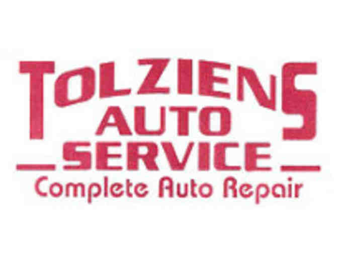 Tolziens' will also load test the car battery, examine the air filters, and verify that rubber components (wiper blades, hoses, belts, tires, etc.) are in proper condition. Suspension, axles, and exhaust will also be examined and a complimentary brake evaluation will also be offered. You can wait while your car is being serviced, or Tolziens' can give you a ride to your destination and pick you up when your vehicle is ready.