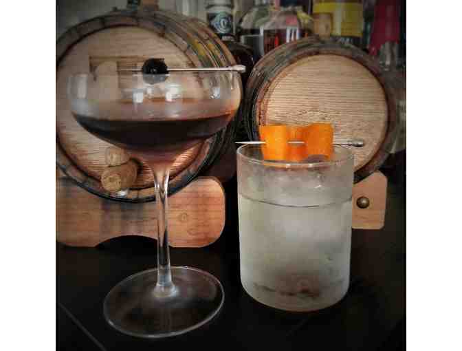 Custom Blended and Infused Barrel-aged Cocktails - "Black Manhattan" and "White Negroni"