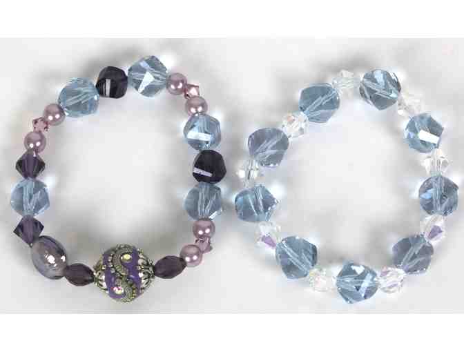 These two stretch beaded bracelets were designed and handmade by Los Angeles jewelry designer Barbara Rice. Storage pouches included.