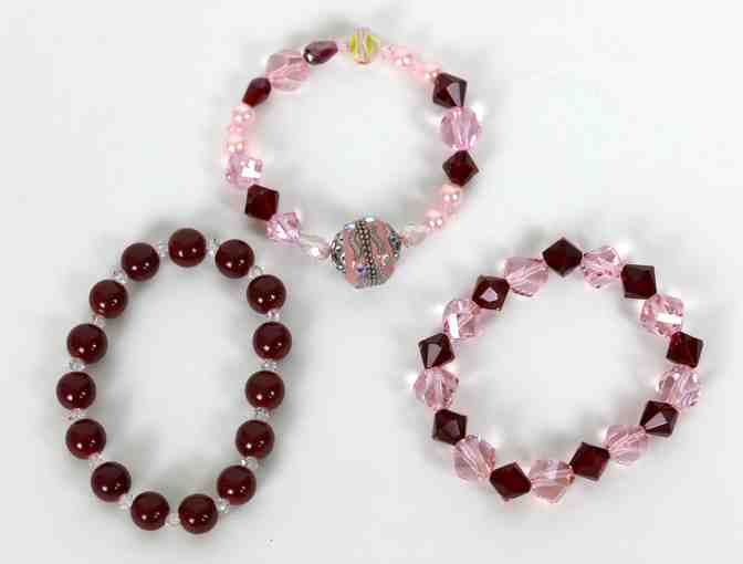 These three stretch beaded bracelets were designed and handmade by Los Angeles jewelry designer Barbara Rice. Storage pouches included.