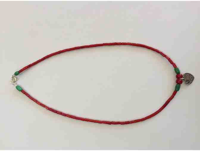 Tubular coral beads with silver clasp and silver love my dog pendant. 16 inches