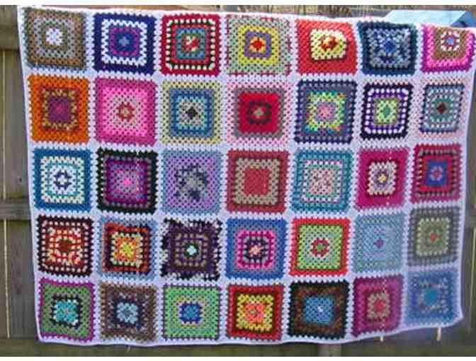 Beautiful one of a kind crocheted granny square afghan measuring 80" by 90". Machine washable and dryable.