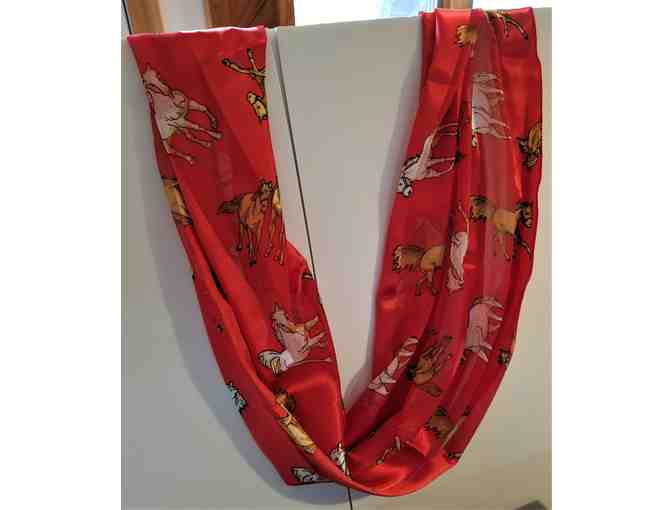 You are bidding on a beautiful light weight scarf. The scarf is 60" in length and made from 100% polyester.