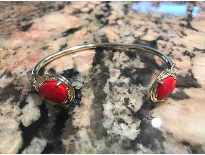 Kendra Scott Goldtone Bangle with Carnelian colored end cap stones.