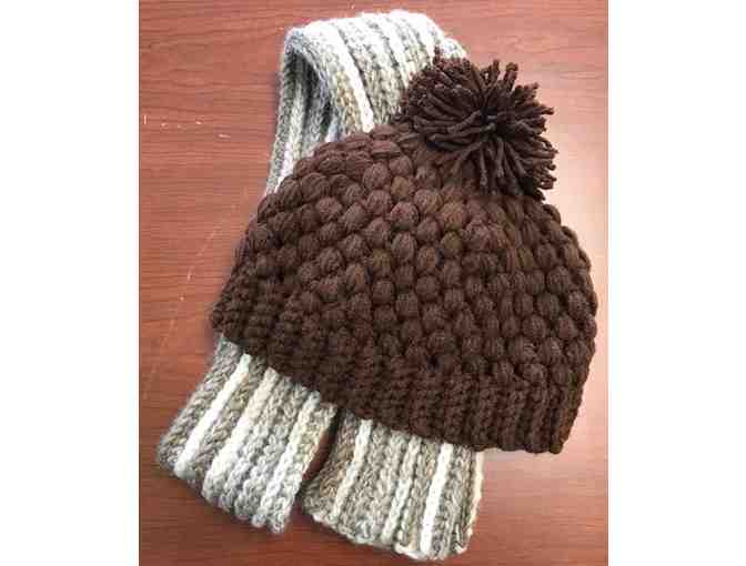 Adult handmade crocheted hat and scarf donated by local artisit Donna Kerr