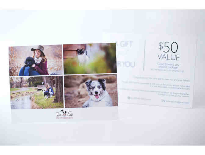 This is a gift card for $50 toward any pet photography package of your choice. All photo packages include high resolution digital files and start at $145.