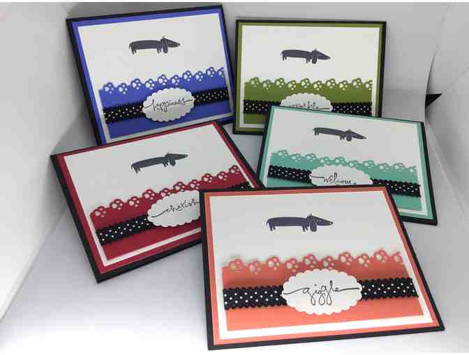 This very cute set of 5 dog themed cards includes envelopes and each card is unique! Hand crafted in Colorado Springs by a NMDR volunteer, the cards will be shipped directly to you.