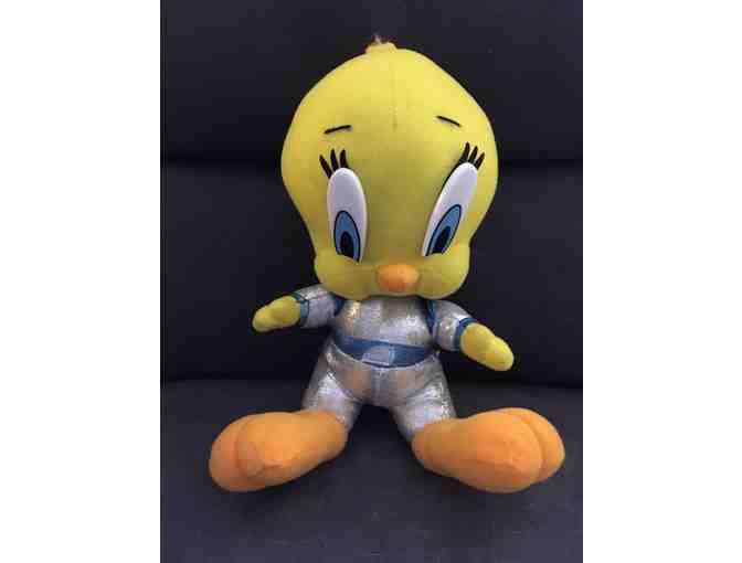 Tweety is taking to world's beyond in her adorable space suit. This plush animal stands 10 inches high. Donated by Steve Warren.