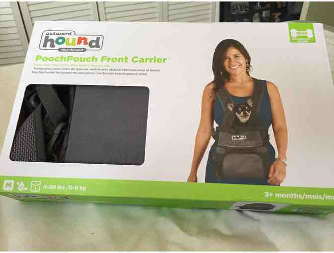 Brand New in box. The carrier fits small dogs up to 20lbs. It is very comfortable and keeps the dog safe.