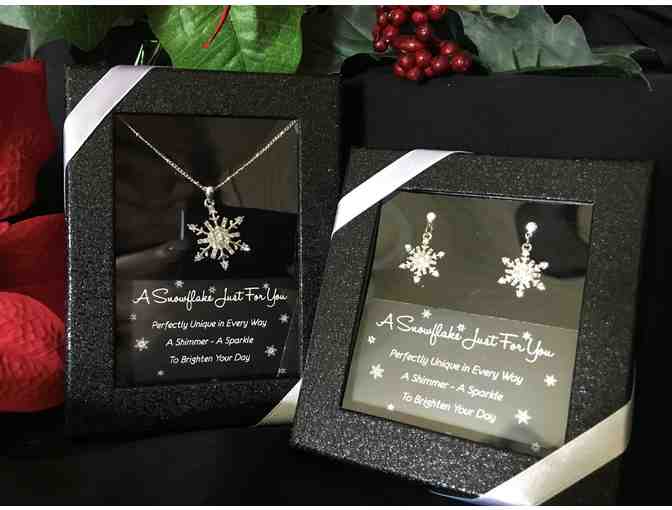 Crystal Snowflake necklace and earrings, shimmering through and through. A perfect compliment to the Snowflake Bracelet, Lot #120 on our auciton site.
