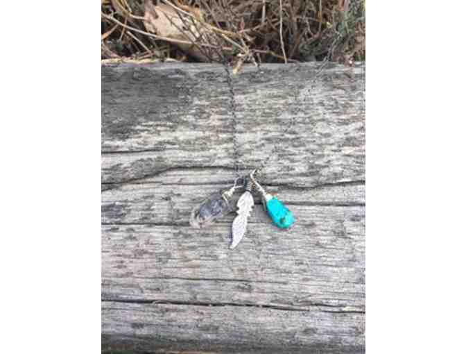 Herkimer diamond, turquoise, and oxidized sterling. The chain is 17"