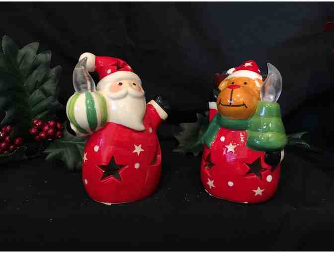 These 5" high ceramic lighted figurines are perfect decor on a mantle, side table or on the dining room table for the holidays.